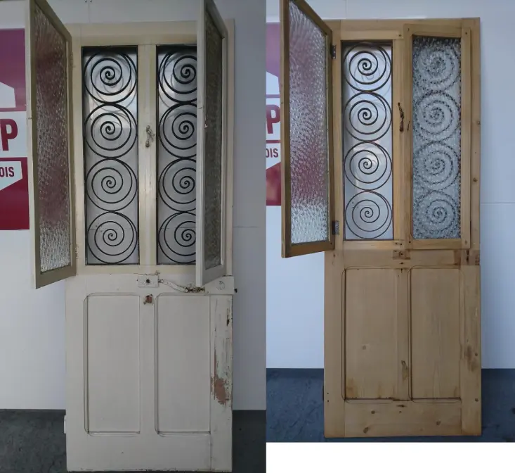 Bois et métal, décapage par immersion. Mise à nu des peintures, lasures et vernis pour retrouver le bois d'origine.